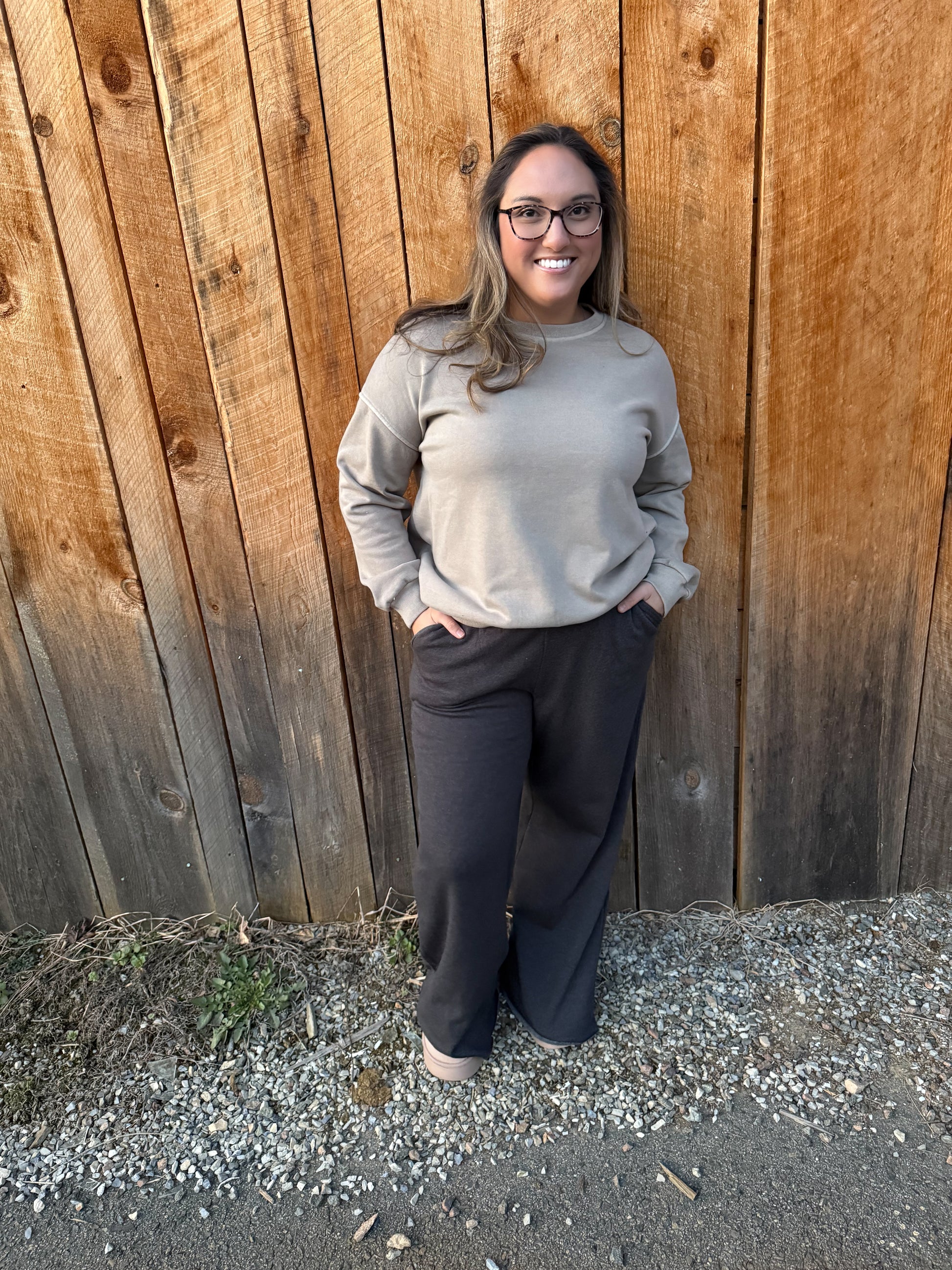 EXAMPLE on how to style: Pair them with a fitted crop top and chunky sneakers for a sporty-chic look, or with an oversized knit sweater for maximum cozy appeal.