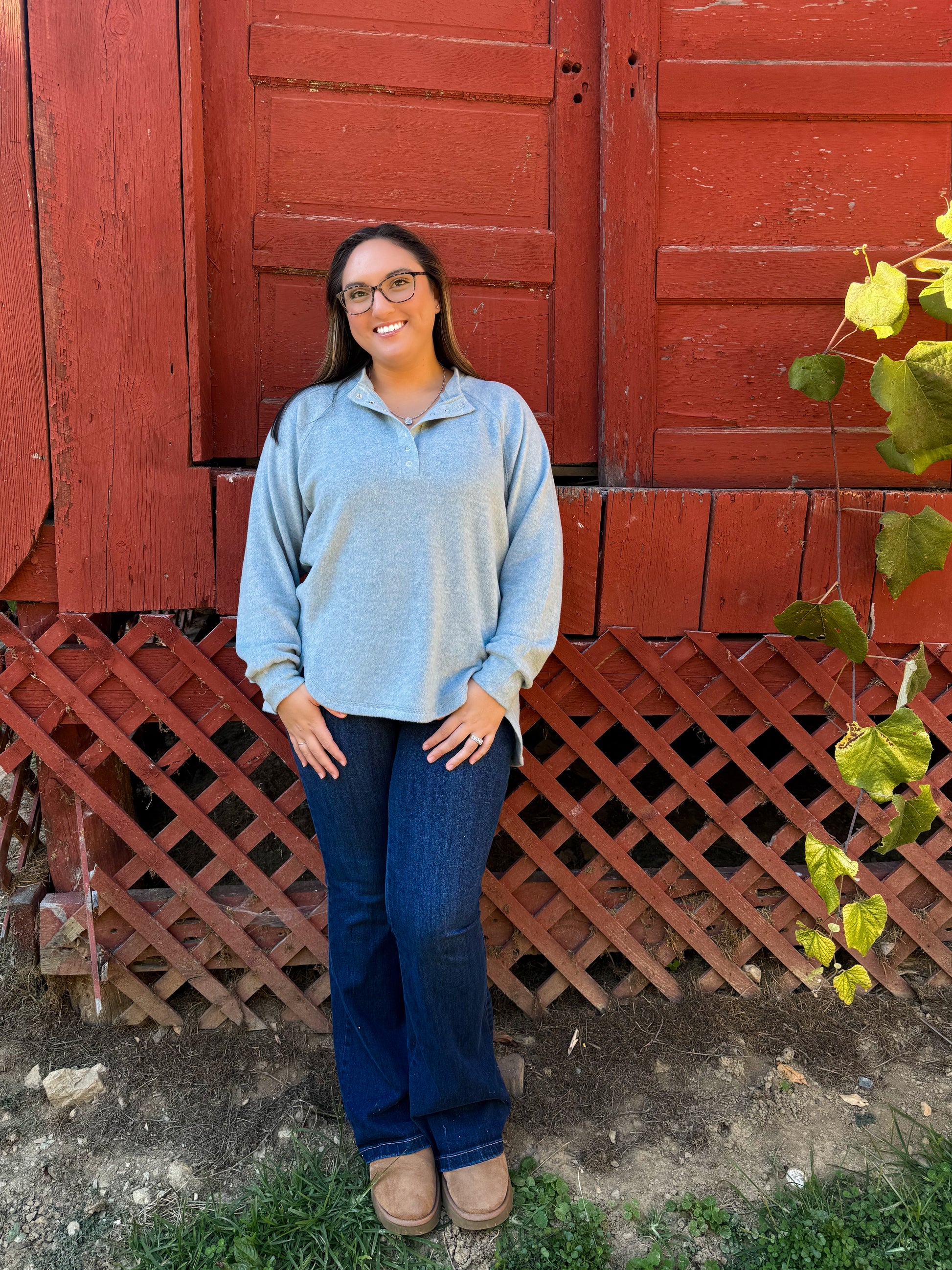 Cozy Snap Fleece Henley Pullover- Blue Grey