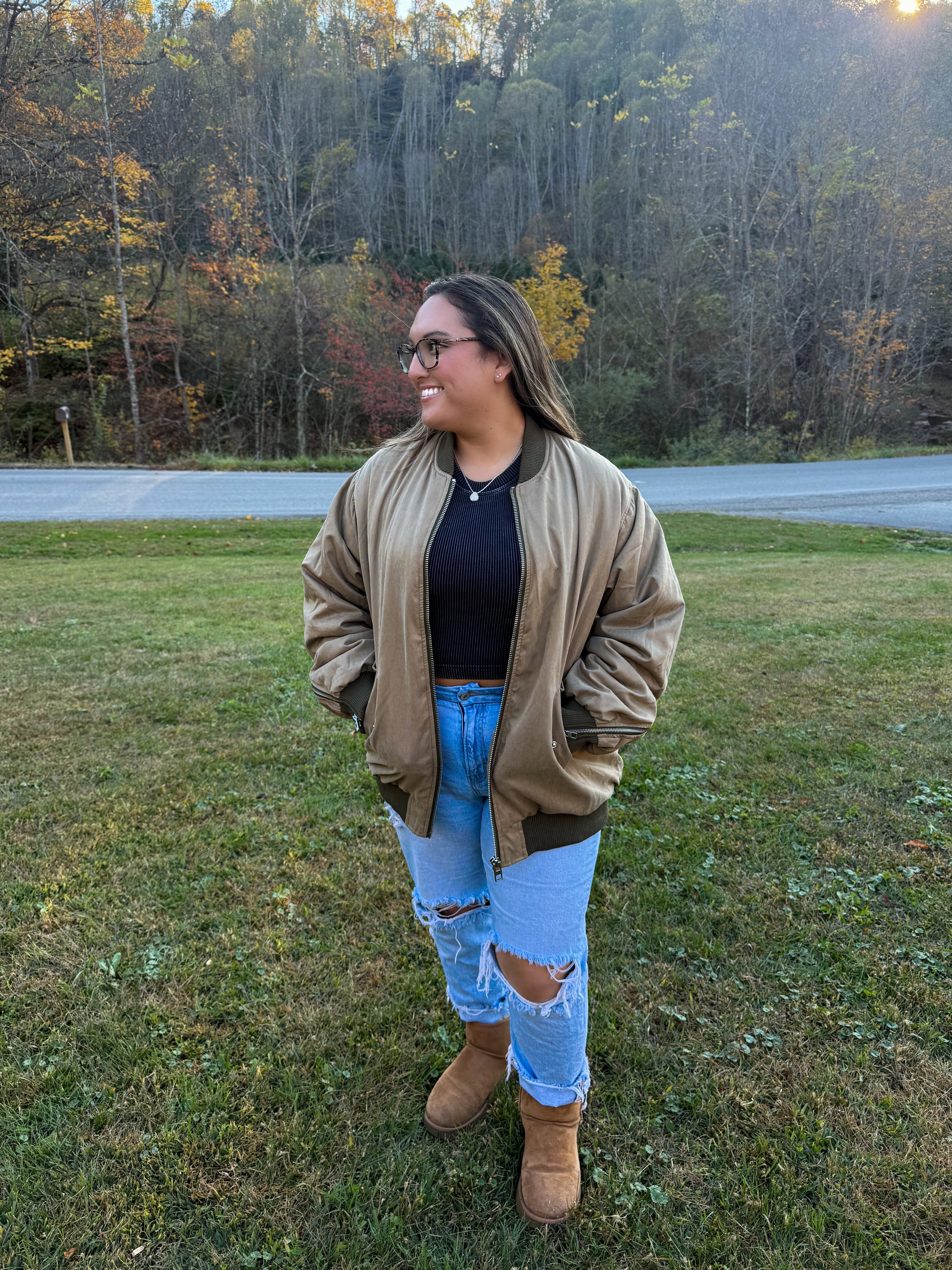 The Laid-Back Luxe Puffer Bomber- Khaki
